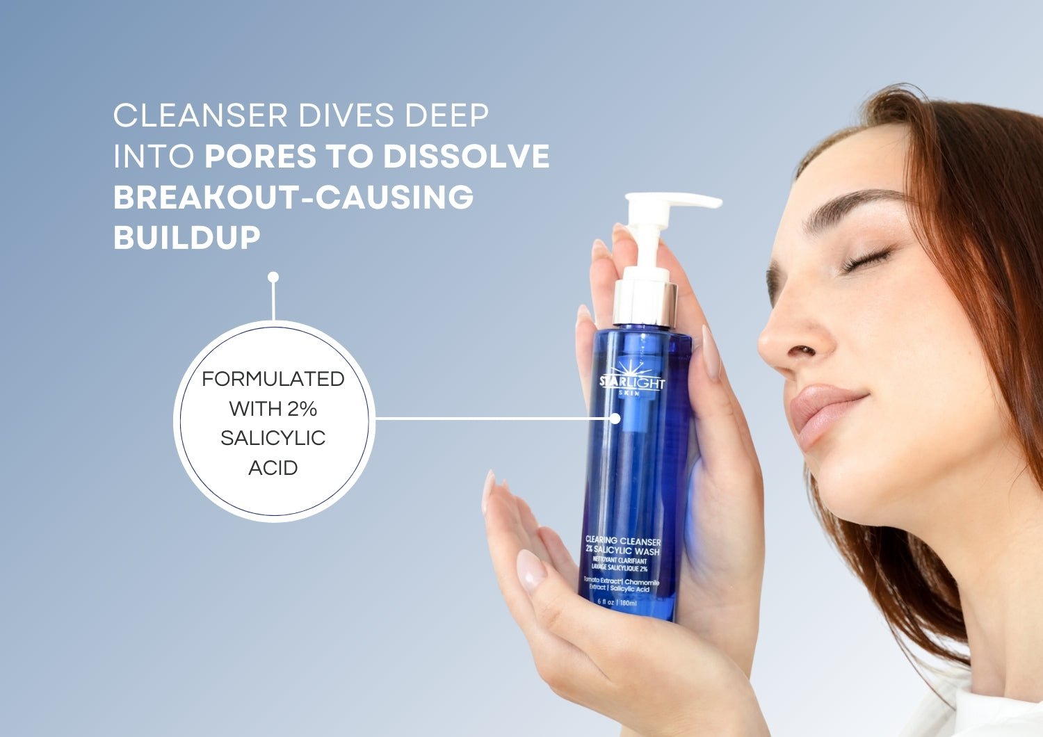 Formulated with 2% salicylic acid, this cleanser dives deep into pores to dissolve breakout-causing buildup, while chamomile, arnica, and aloe work together to calm redness, reduce inflammation, and support a healthy skin barrier.